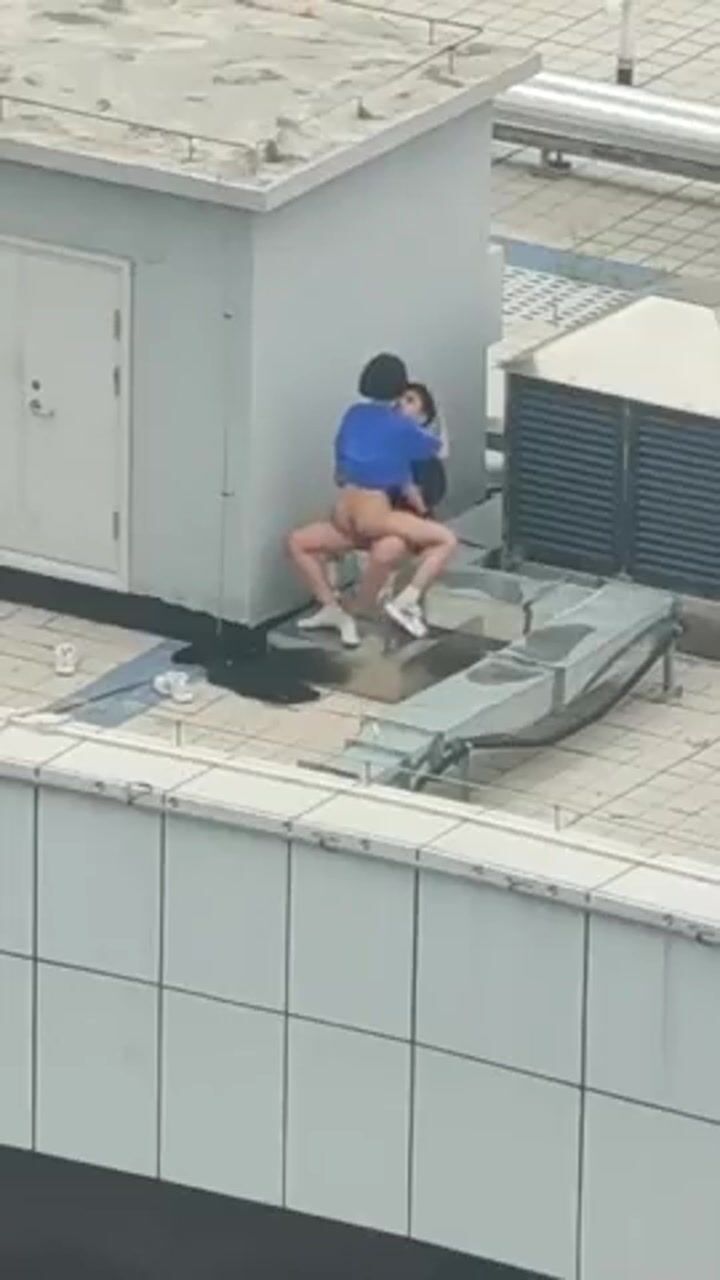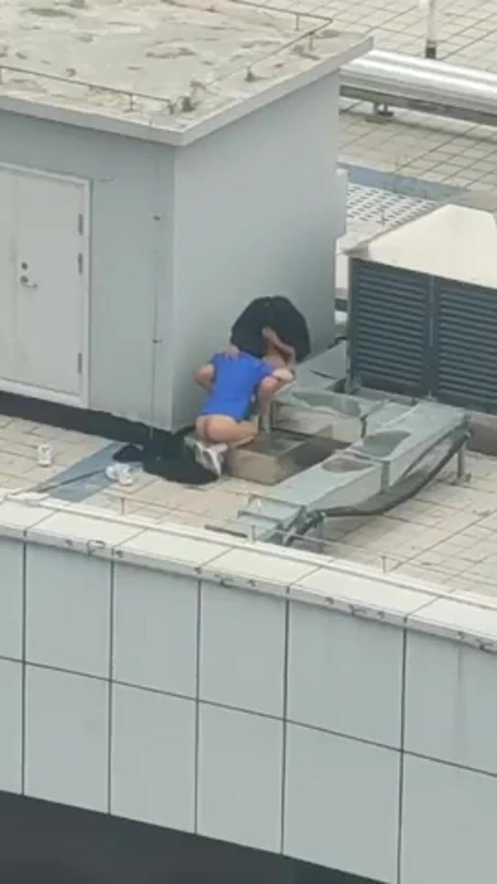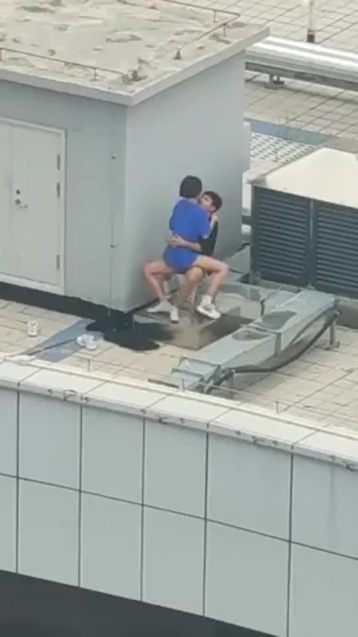 小情侶上樓頂天震 快把衣服脫了 年輕人玩的嗨啊吃嘴裡去了 持久力不行