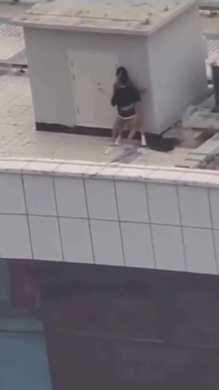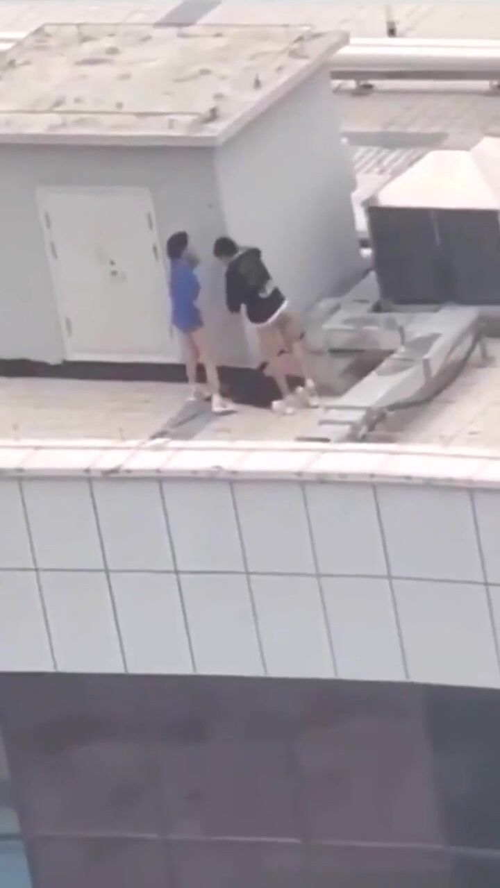 小情侣上楼顶天震 快把衣服脱了 年轻人玩的嗨啊吃嘴里去了 持久力不行